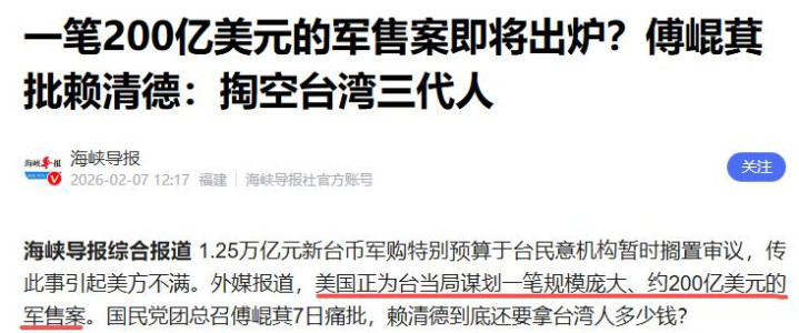 加上去年12月底的111亿对台军售,超过300亿军需订单,这是在挑战中方的耐力。