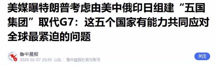 鲁中晨报——2026年2月7日——美媒曝特朗普考虑由美中俄印日组建“五国集团”取代G7:这五个国家有能力共同应对全球最紧迫的问题